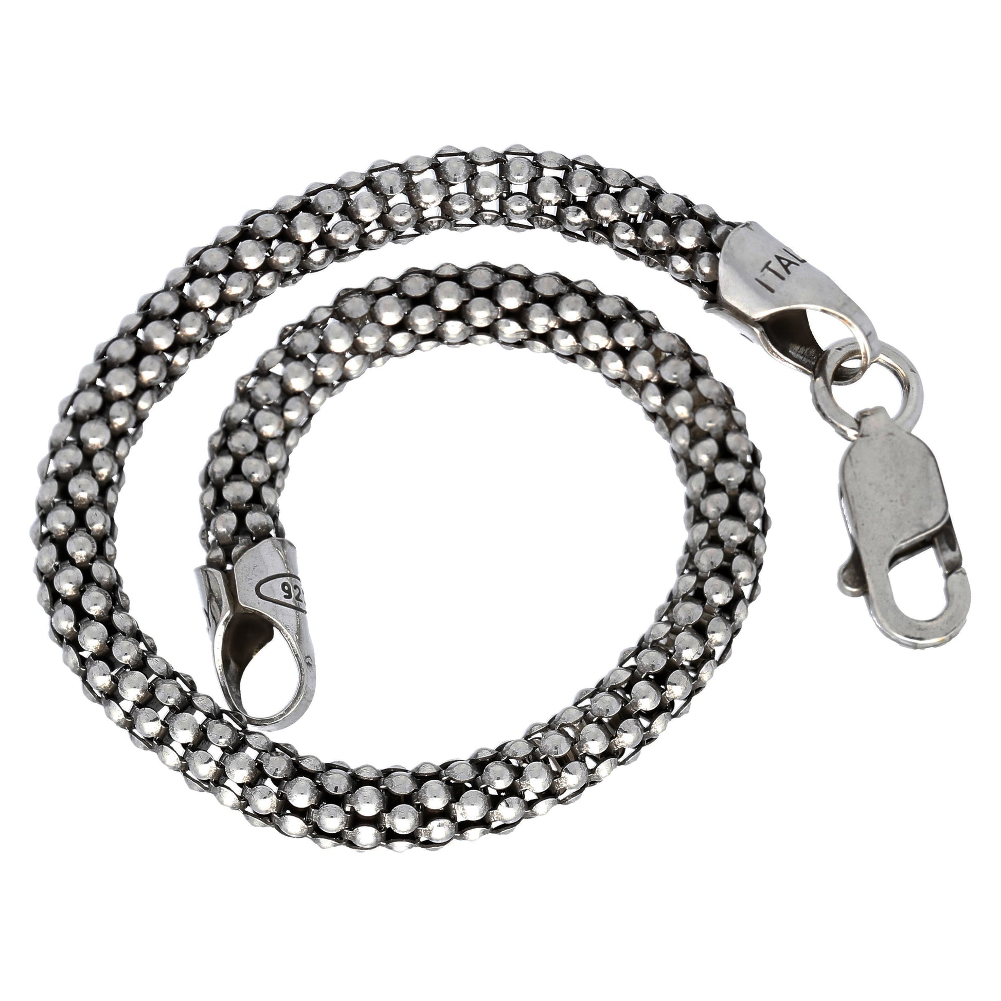 This popcorn style chain is a large width yet it feels light and comfortable. The chain has been oxidized to give it a darkened finish. It was crafted in Italy, closes with a lobster claw, and is marked 925.